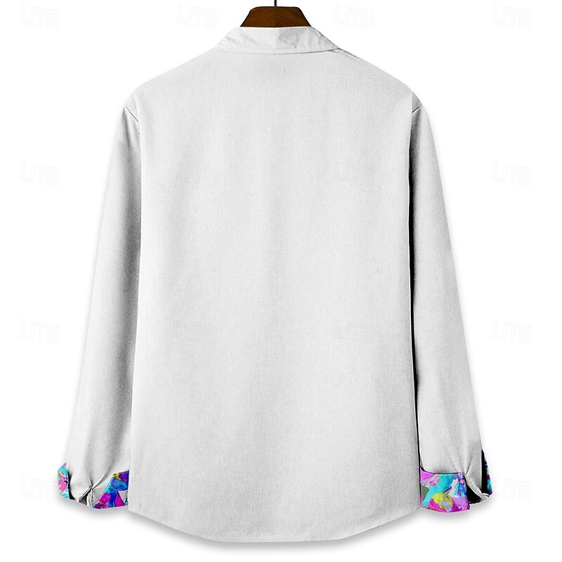 Highlights [Fabric] : Crafted from lightweight and breathable polyester, this men’s shirt is perfect for staying cool and comfortable throughout all seasons. Its thin fabric ensures it can be layered easily or worn solo for laid-back summer days. [Fit] : The shirt offers a regular fit, providing a comfortable and relaxed silhouette that is suitable for a range of body types. Its long sleeve design adds versatility, ideal for varying temperatures. [Design Highlights] : This shirt stands out with its vibrant floral and tropical flower patterns, featuring a classic collared neckline. The multicolored inner collar and cuff linings introduce a playful contrast, while the 3D print design enhances its visual appeal. [Occasions] : Perfect for vacations, beach outings, and daily wear, this Hawaiian-style shirt is versatile enough to transition from casual day events to semi-formal gatherings with ease. [Size Range] : Available in a wide range of sizes from S to 3XL, ensuring a suitable fit for various preferences.