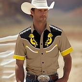 More information about Men's Southwestern Print Shirt Western Shirt Cowboy Shirt Short Sleeve Western Style Tribal Summer Spring Shirt Collar Khaki