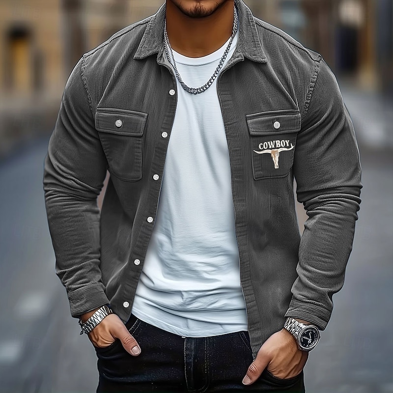 More information about Men's Cow Print Corduroy Shirt Shirt Jacket Overshirt Long Sleeve Vintage Retro Outdoor Dailywear Fall Winter Turndown Button-Down Warm Jacket with Flap Pockets Blue Green Khaki Gray