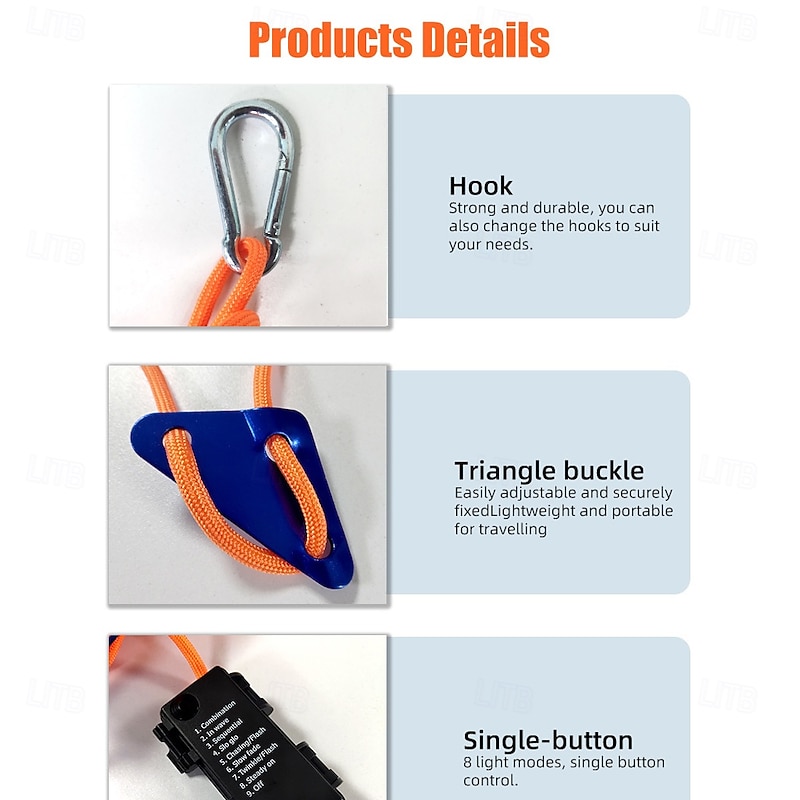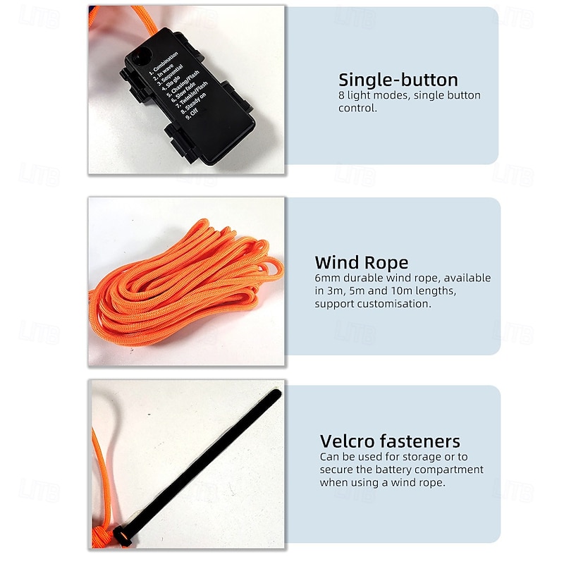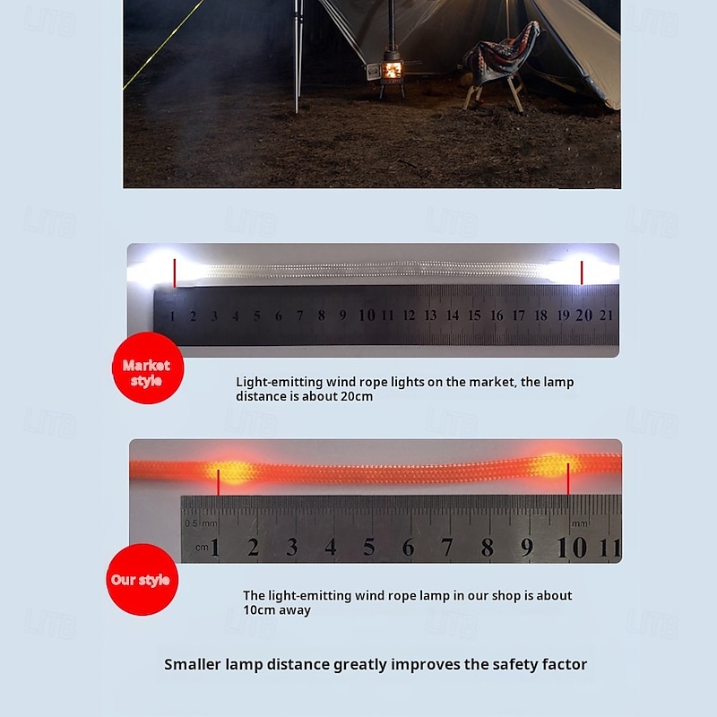 More information about 1 Pc Outdoor Camping Rope Lights Luminous Rope – 3M/5M/10M, IP66 Waterproof, Windproof Tent Canopy Rope with 8 Lighting Modes, sturdy Design, and AA Waterproof Battery Box