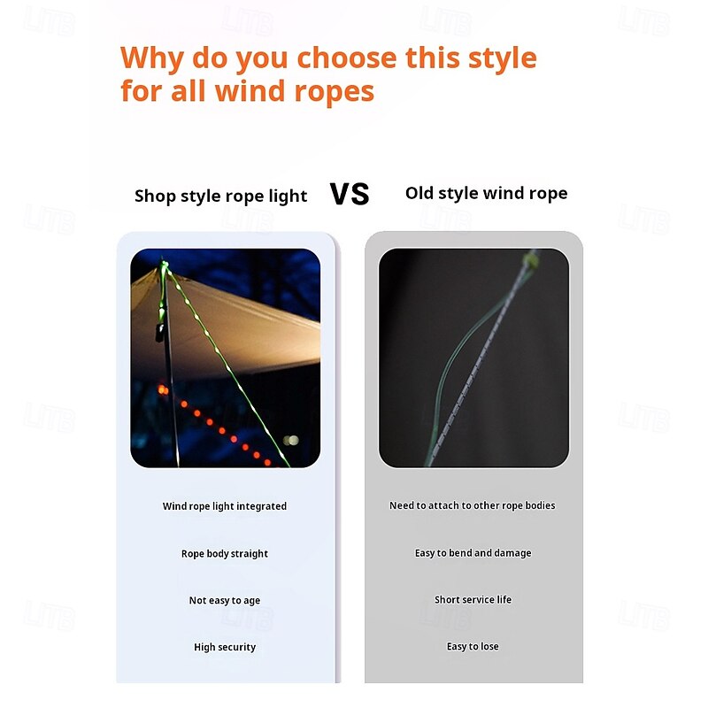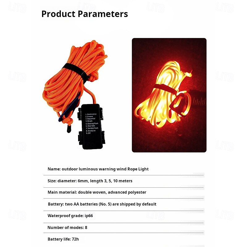 $13.49 - 1 Pc Outdoor Camping Rope Lights Luminous Rope – 3M/5M/10M, IP66 Waterproof, Windproof Tent Canopy Rope with 8 Lighting Modes, Durable Design, and AA Waterproof Battery Box 2025. Shop for cheap Battery String Lights online? Buy at lightinthebox.com on sale today!