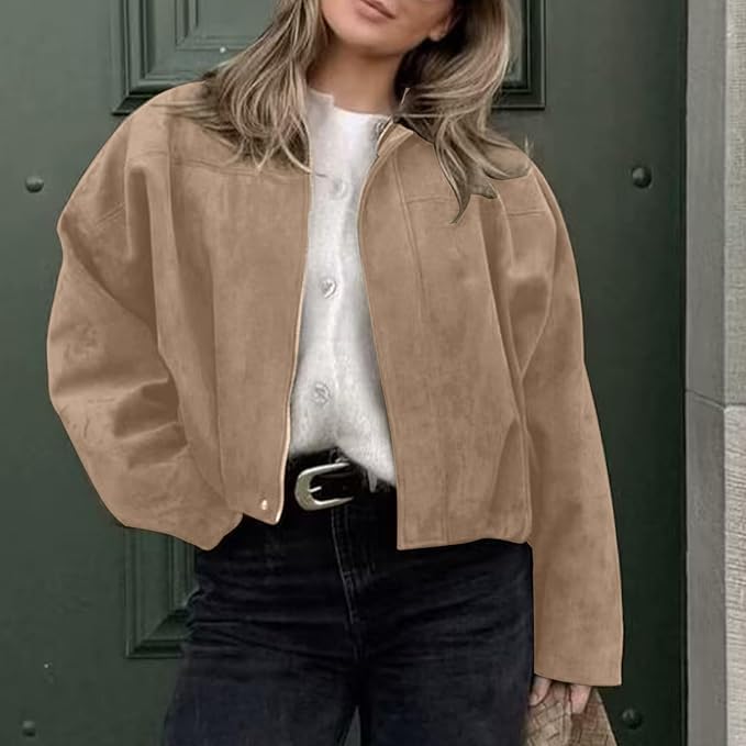 Fabric type: PolyesterCare instructions: Machine WashOrigin: Imported[2025 Fashion Statement] This Women's Faux Suede Bomber Jacket Features An Oversized Cropped Silhouette With A Sleek Lapel Collar And Pilot-Inspired Shape For A Y2k Outerwear Vibe And Street-Style Versatility[Premium Vegan Suede Look] Made From High-Quality Faux Suede That Mimics Real Suede Jacket Women Textures Without Animal Products β Lightweight Soft And Perfect As Fall Outerwear Or A Casual Lapel Coat[Thoughtful Functional Details] Full Zipper Detail Closure With Hidden Snap Placket Ribbed Cuffs And Hem, Long Batwing Sleeves And Ruched Pleated Hem For A Flattering Relaxed FitβClassic Lapel Bomber Jacket Womens Elements Meet contemporary Comfort[Effortless Styling & Occasions] Pairs Easily With High-Waisted Jeans Dresses Leggings Or Sneakers To Create Trendy Fall Casual And Going-Out Looks Works As A Womens Cropped Bomber Jacket Or Faux Leather Jacket Alternative For Jackets For Women Trendy Ensembles[Easy Care & Season-Spanning Wear] Lightweight Yet Durable With A Soft Lining For Spring-To-Fall Layering Machine Wash Cold In A Laundry Bag Or Hand Wash Hang To Dry Check The Size Chart For Your Preferred Oversized Or Fitted Look Perfect for everyday use. premium materials and excellent craftsmanship ensure long-lasting durability.
