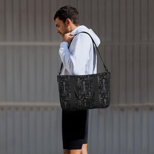 Travel Duffle Bags For Women Men - Cool Black Guitar Print Personal Item Weekender Overnight Gym Carry On Airport Tote Bag With Strap For Yoga, Travel, Business Trips 7