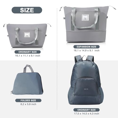 5 Piece Travel Luggage Set with Expandable Duffel Bag & Foldable Backpack – 20"/24"/28" Suitcases with 360° Wheels, Lock, Grey 7