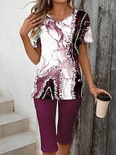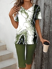 More information about Women's Fashion T Shirt Shorts Sets Short Sleeve V Neck Floral Graphic 3D Print Print Casual Daily Wine Army Green Dark Navy Summer Regular Fit