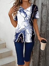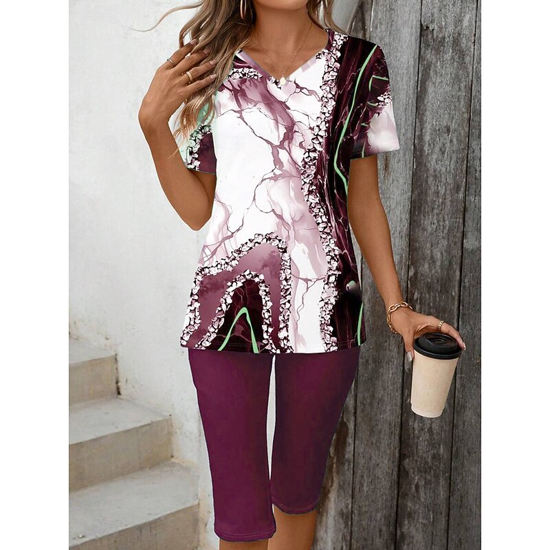 HOT ! Women's Fashion T Shirt Shorts Sets Short Sleeve V Neck Floral Graphic 3D Print Print Casual Daily Wine Army Green Dark Navy Summer Regular Fit