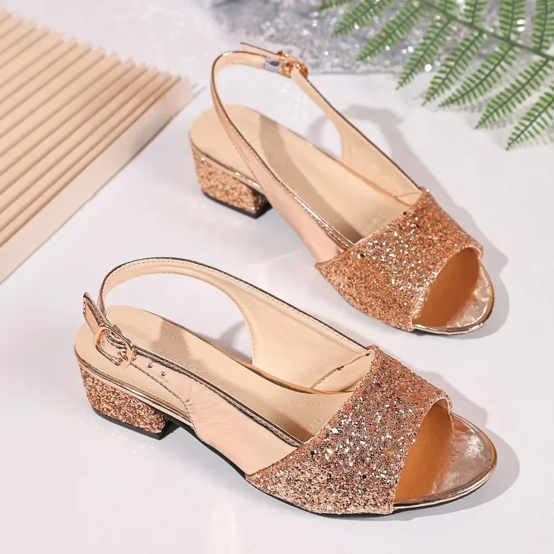 2025 Summer New Women's Peep Toe Sandals Fashion Round Toe Low Heel Sandal for Daily & Dressy Wear.