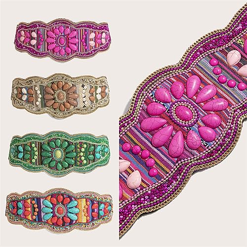 Bohemian Waist Belt Hand Beading for Travel Ethnic Photography Props Stretchy Belt Heavy Duty Colorful Beads, Green 1