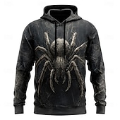 Halloween Men's Spider 3D Hoodie Sweatshirt Punk Exaggerated Crew Neck Club Streetwear Black 1 Black Drawstring Fall Winter Designer 1