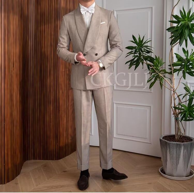 • CKGJLJ Suit Man Features:We use the design of Lightweight Linen Suits,Double Breasted Linen Blazer Two Button Jackets Linen Pants,Shawl Lapel Beige Wedding Linen Groom Suits for Man. Which gives the suit a unique personality men's slim fit suits set.