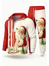 More information about Christmas Men's Hoodie Tracksuit 2 Piece Tracksuit Drawstring Zip Up Color Block Clothing Suit Fall Red Casual Vocation Outdoor Lightweight Fashion Long Sleeve Sport Activewear Stretchy Regular Fit