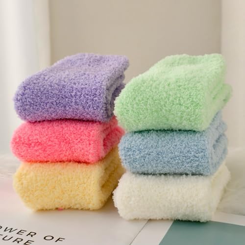 • SOCK DETAILS - 6 pairs of solid color coral fleece wool socks, padded model with delicate handfeel, machine washable and hand washable, standard US size, fits US women's shoe size 6-10.