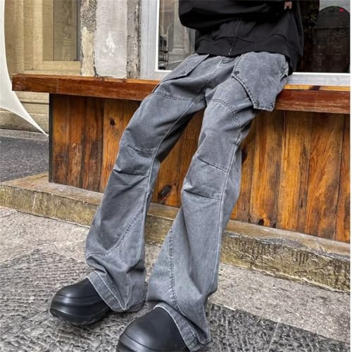 HOT ! Men Washed gray9 Pleated Baggy Flare Cargo Jeans Pants Clothes Cotton Streetwear Hip Hop Long Trousers