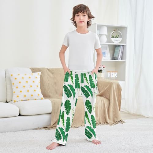 ZZXXB Banana Leaves Boys Long Pants Soft Trousers Elastic Waist Kids Lounge Bottoms with Pockets S-XL 4