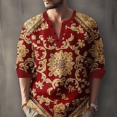 HOT ! Men's Floral Shirt Button Up Shirt Henley Shirt Long Sleeve Vintage Casual Vacation Daily Beach Wear Summer Spring Fall Collarless V Neck 3D Print Buttons Red