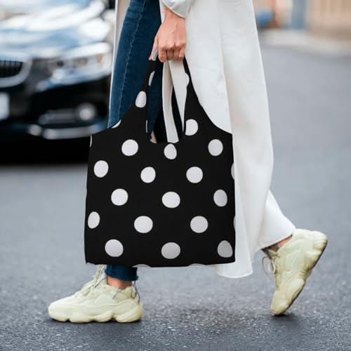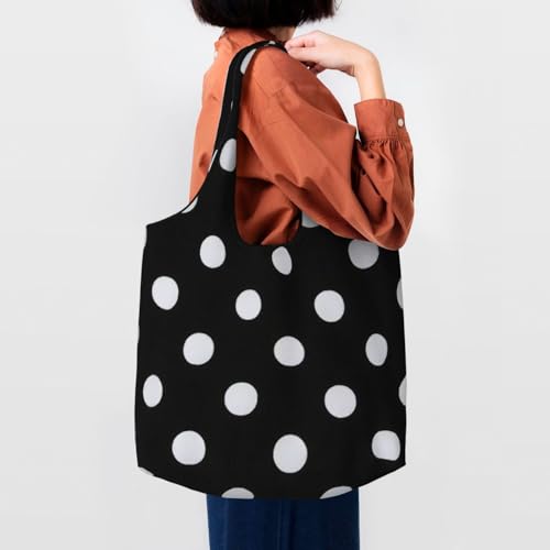 HOT ! Black & White Big Dot Print Aesthetic Canvas Tote Bag - Reusable Shoulder Tote Bag For Women Lady Casual Vacation, Shopping, Work, Gym