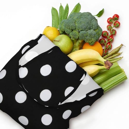 Black & White Big Dot Print Aesthetic Canvas Tote Bag - Reusable Shoulder Tote Bag For Women Lady Casual Vacation, Shopping, Work, Gym 7