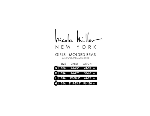 • Comfotable Support: The Nicole Miller Girls' Molded A-Cup Training Bra is thoughtfully designed to offer young girls the comfortable support they need during the transition into wearing bras. It's an essential first step on their journey to adulthood, providing gentle coverage without compromising on comfort. Ideal for ages: 30A (10-12), 32A (12-14), 34A (14-16), 36A (16-18). Please refer to the size chart for accurate sizing to avoid any fitting issues.