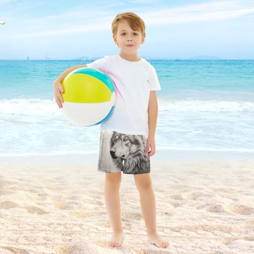 HOT ! Mountain Wolf Boys Swim Trunks with Compression Liner Quick Dry Bathing Bottom Kids Beach Shorts