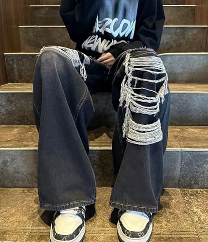 More information about chouyatou Men's Y2k Ripped Wide Leg Jeans High Waist Baggy Street Denim Pants with Pockets