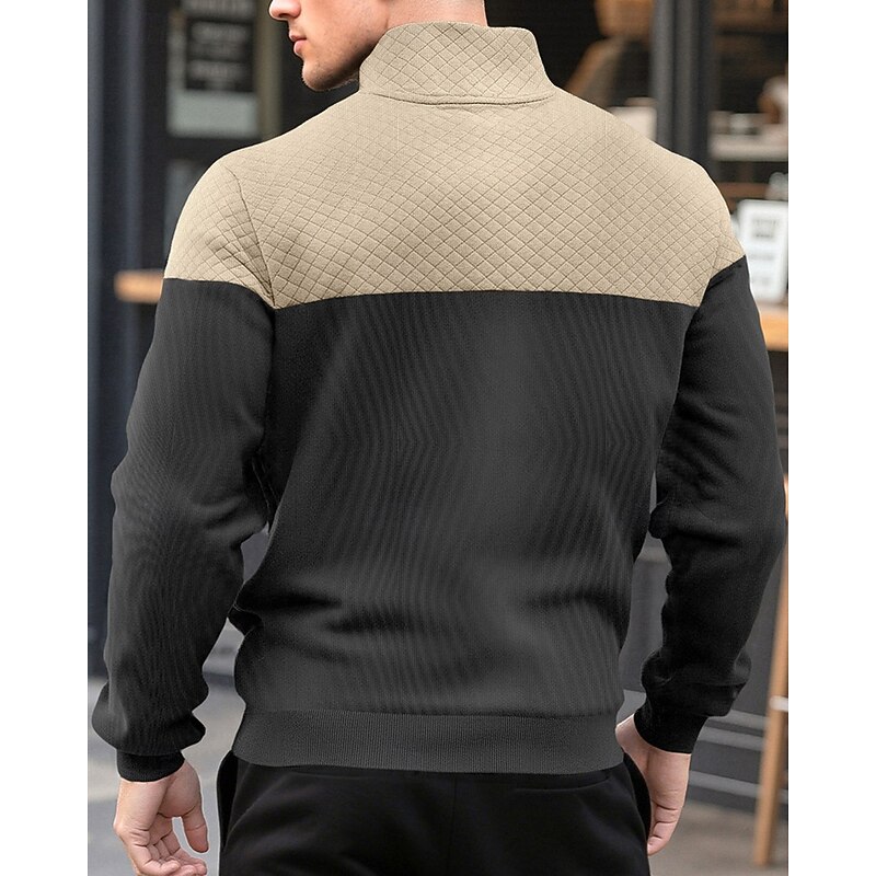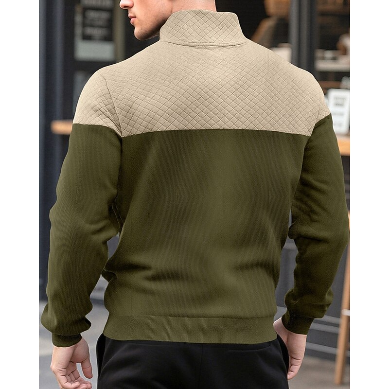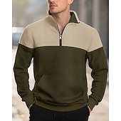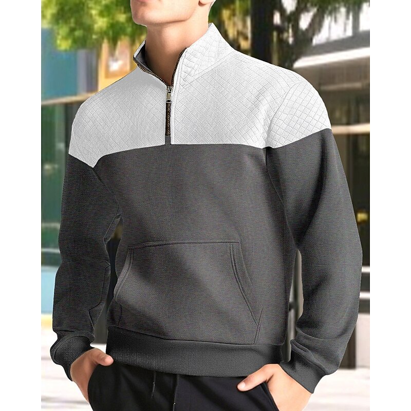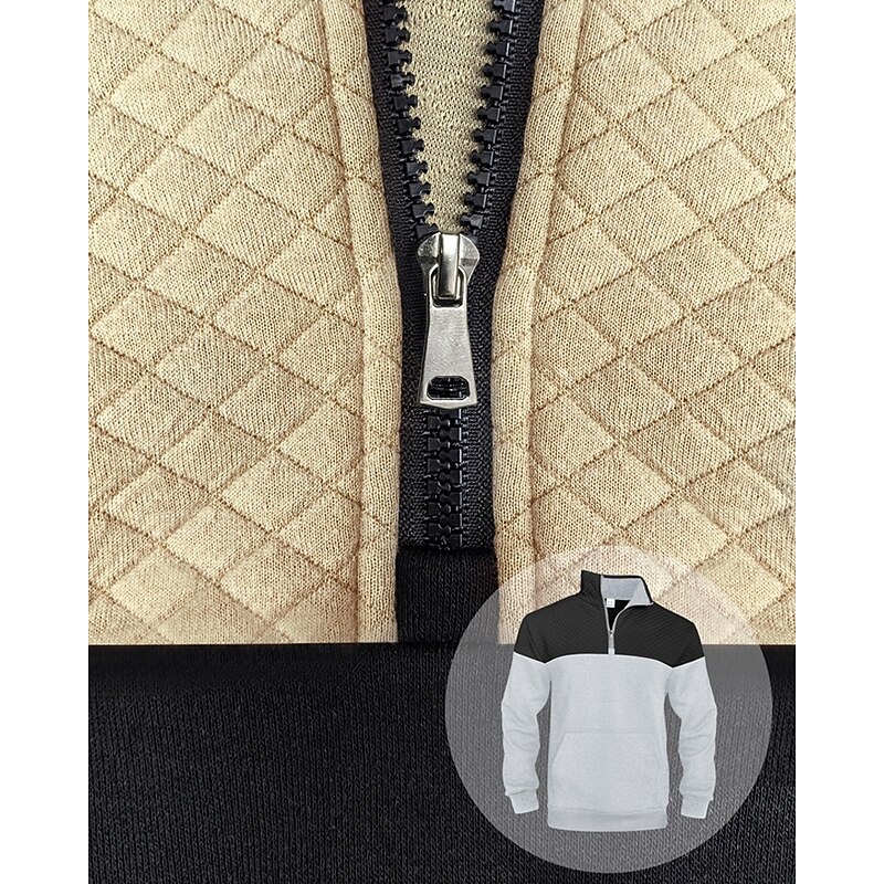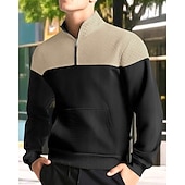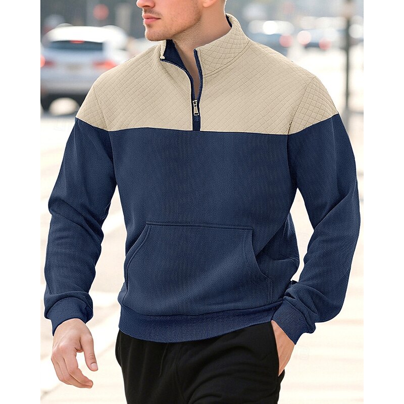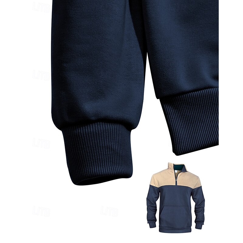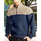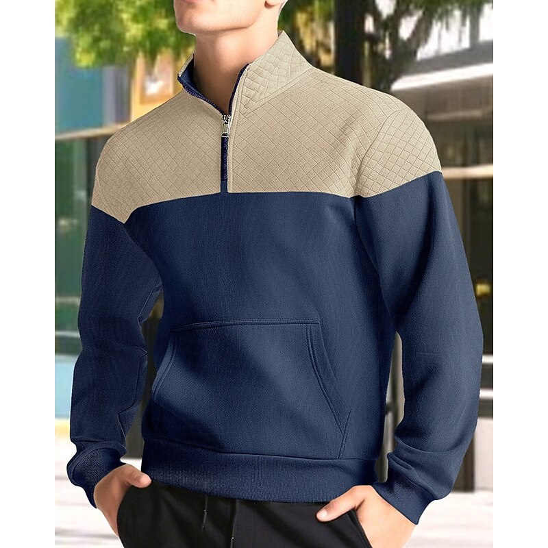 More information about Men's Sweatshirt Quarter Zip Sweatshirt Black Army Green Navy Blue Khaki Gray Half Zip Color Block Jacquard Patchwork Pocket Sports & Outdoor Daily Holiday Polyester Streetwear Basic Casual Spring