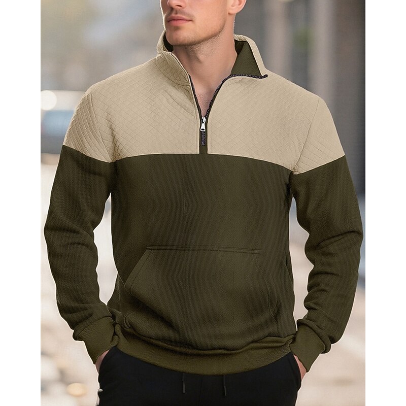 HOT ! Men's Sweatshirt Quarter Zip Sweatshirt Black Army Green Navy Blue Khaki Gray Half Zip Color Block Jacquard Patchwork Pocket Sports & Outdoor Daily Holiday Polyester Streetwear Basic Casual Spring