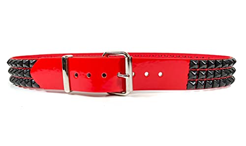 Why Choose Patent Red Three Row Black Pyramid Stud Belt Vegan Leather Punk Goth Alternative USA Made?