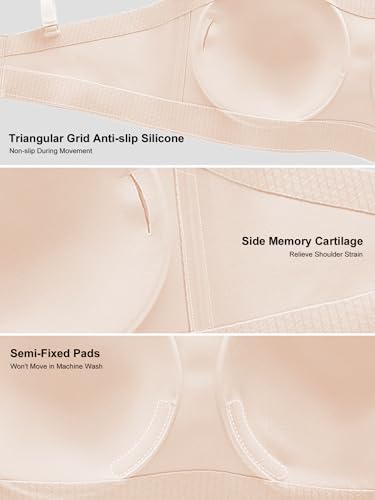 • 360° Anti-Slip & Secure Fit: Features side frame support and triangular grid silicone strips, double anti-slip technology ensures the strapless bra stays in place during daily activities or light exercises, no shifting