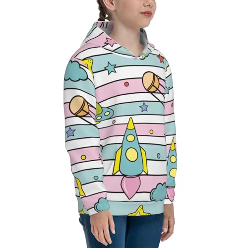 Space Doodle Kid Hoodies Boys Sweatshirts Girls Pullover with Pocket 7