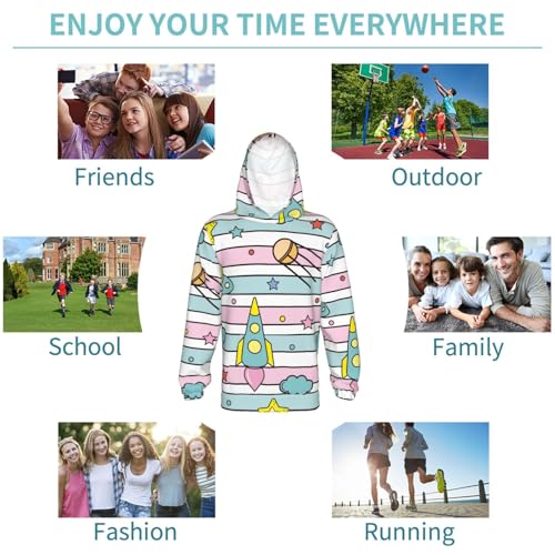 Space Doodle Kid Hoodies Boys Sweatshirts Girls Pullover with Pocket 6