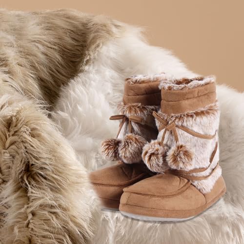 Fluffy Slippers for Women Cute Warm Indoor Bootie Slippers with Pompoms Non-slip House Home Boots 5