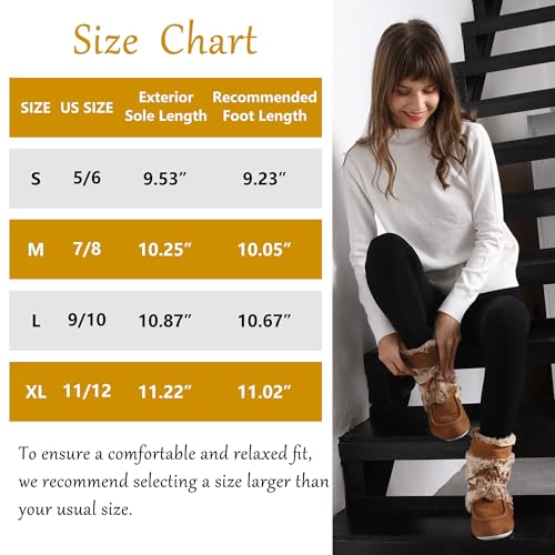 • Size Chart - Our home bootie slippers are available in four sizes for you to choose from: small (fits US size 5-6, outsole length 9.65 inches), medium(fits US size 7-8, outsole length 10.24 inches), large(fits US size 9-10, outsole length 11.02 inches), and X-large(fits US size 10-11, outsole length 11.22 inches). Please take note that due to the thick lining, the internal sole length of our bootie slippers is more shorter than the exterior sole.