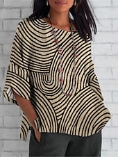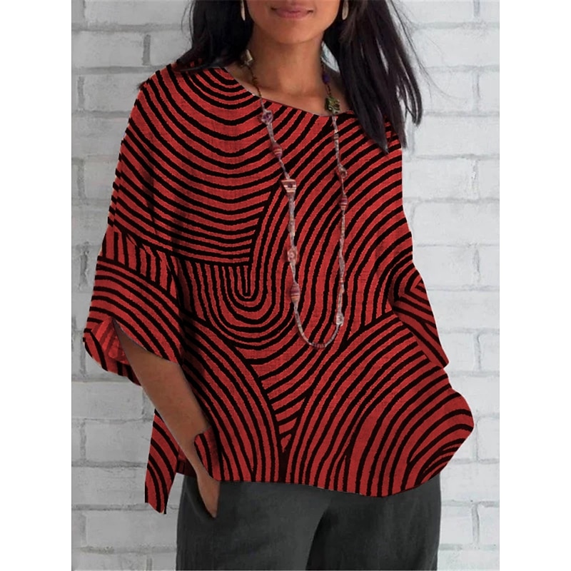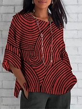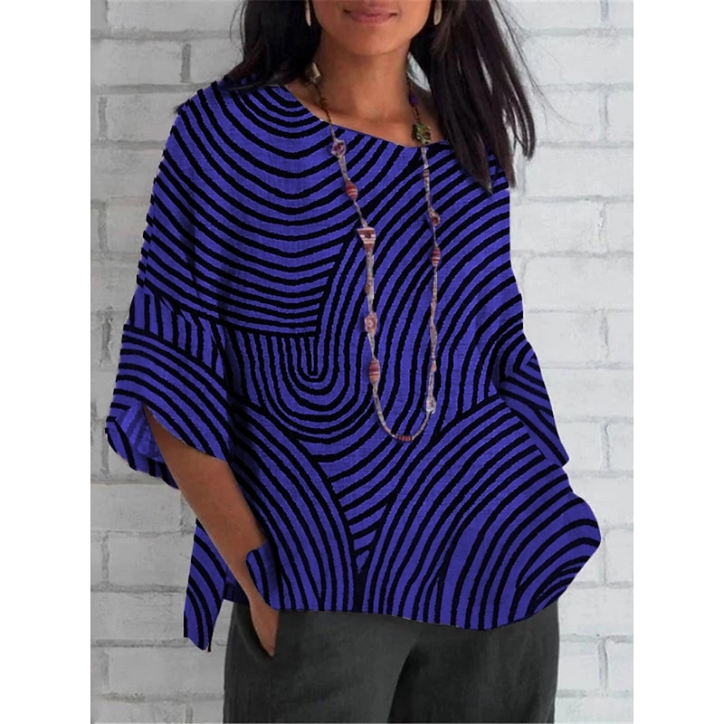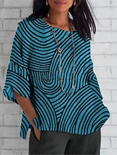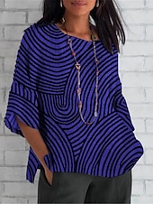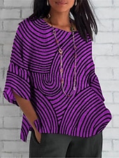 More information about Women's Shirt Geometric Daily Casual 3/4 Length Sleeve Crew Neck Regular Tops Daily Holiday Print Red Royal Blue Blue Purple Green Summer Spring Fall