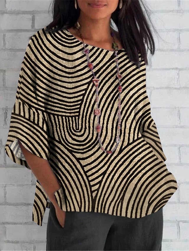 HOT ! Women's Shirt Geometric Daily Casual 3/4 Length Sleeve Crew Neck Regular Tops Daily Holiday Print Red Royal Blue Blue Purple Green Summer Spring Fall