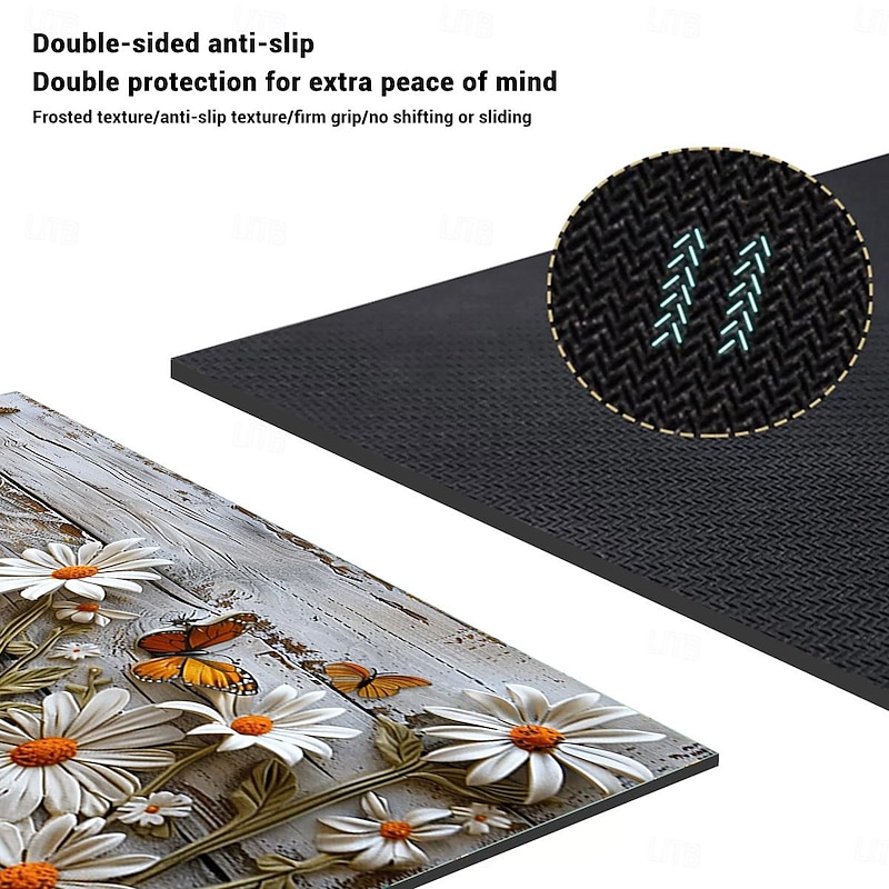 Wooden Daisy Area Rug Kitchen Mat Non-Slip Oil Proof Floor Mat Livingroom Rug Indoor Outdoor Mat Bedroom Decor Bathroom Mat Entrance Rug Door Mat 11