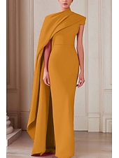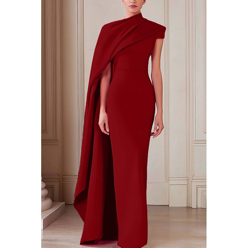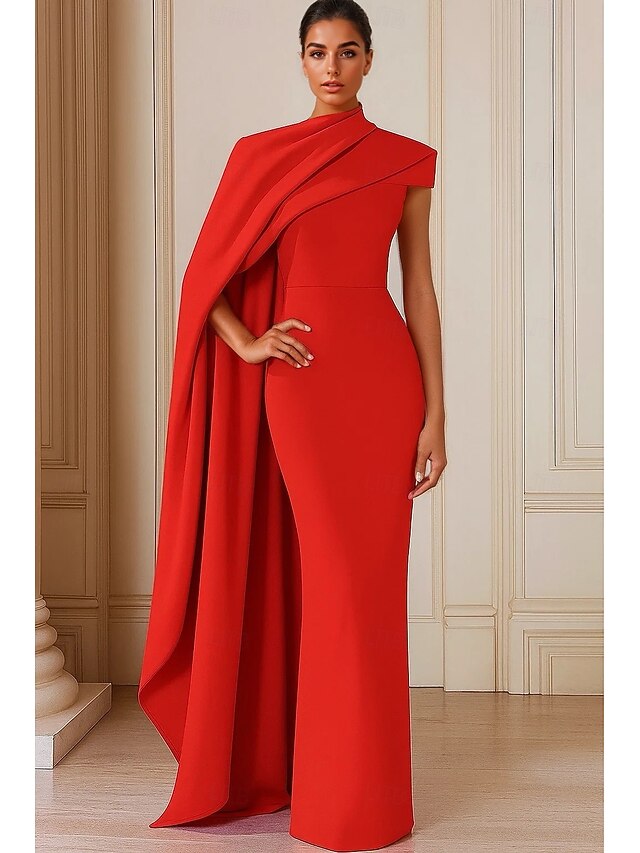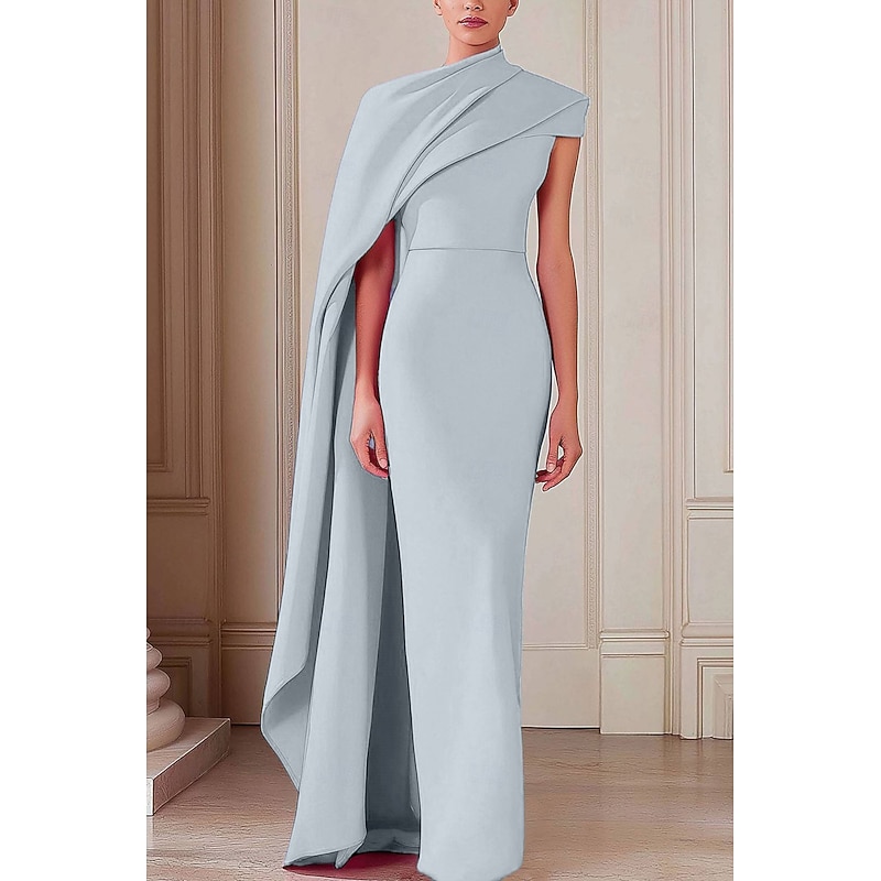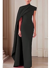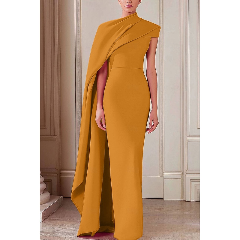 HOT ! Cape Dress Mermaid / Trumpet Evening Gown Mock Neck Elegant Gown Formal Wedding Floor Length Short Sleeve Stretch Crepe with Pleats