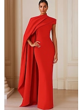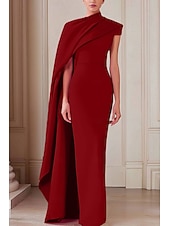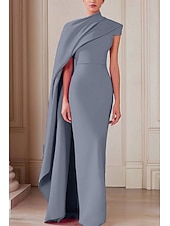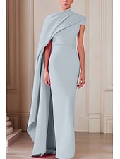 More information about Cape Dress Mermaid / Trumpet Evening Gown Mock Neck Elegant Gown Formal Wedding Floor Length Short Sleeve Stretch Crepe with Pleats