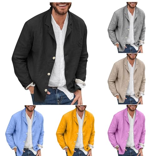 Mens Cotton Linen Shirt Blazers Casual Loose Fit Long Sleeve Button Down Shacket Lightweight Comfy Work Overshirt