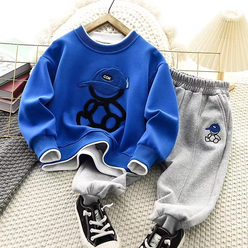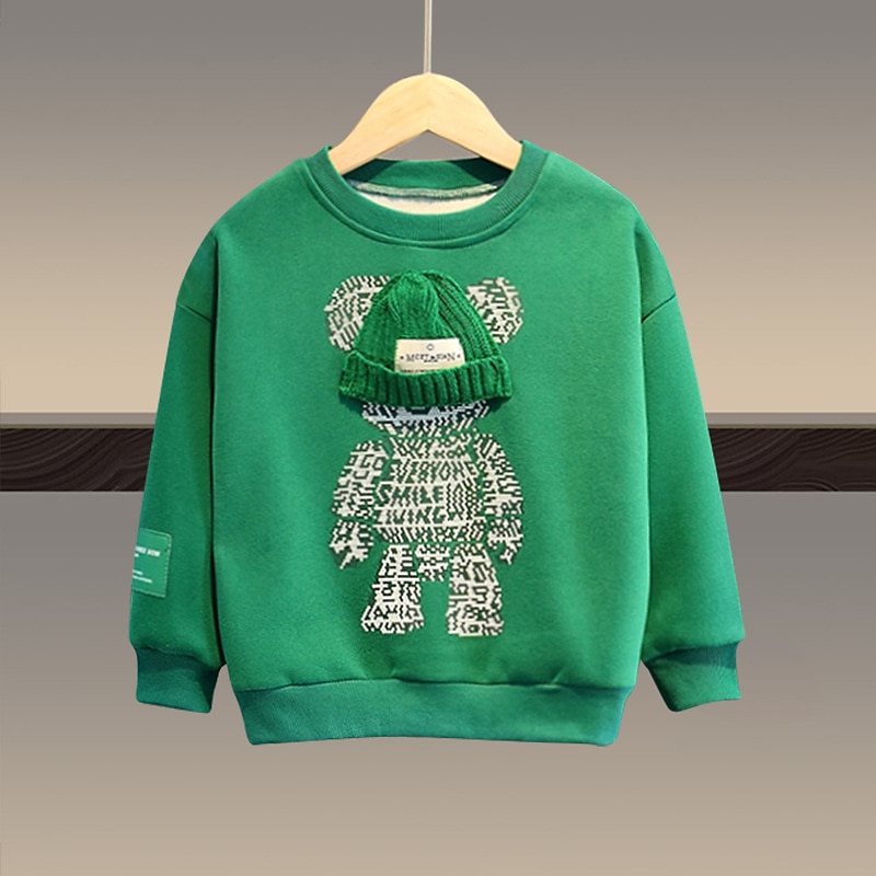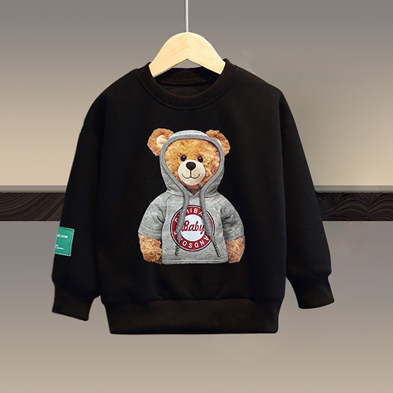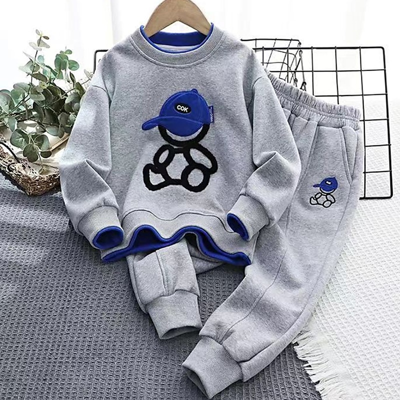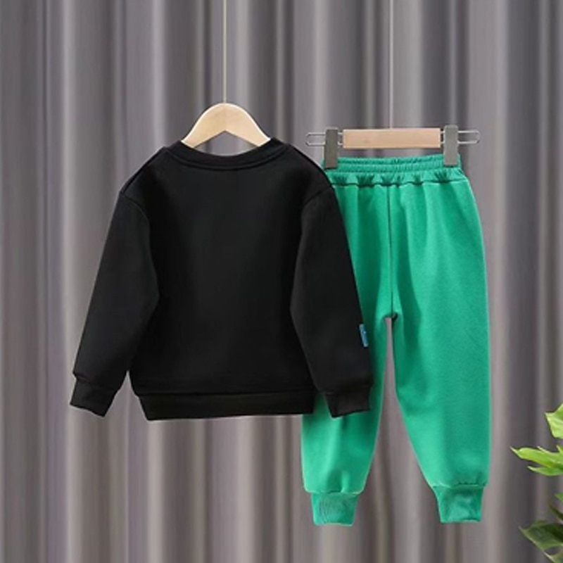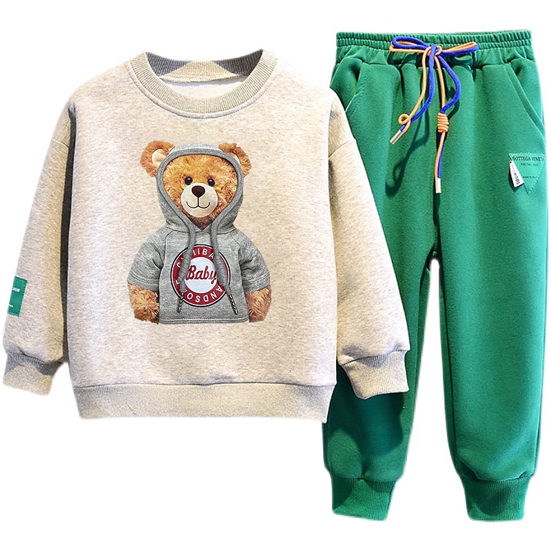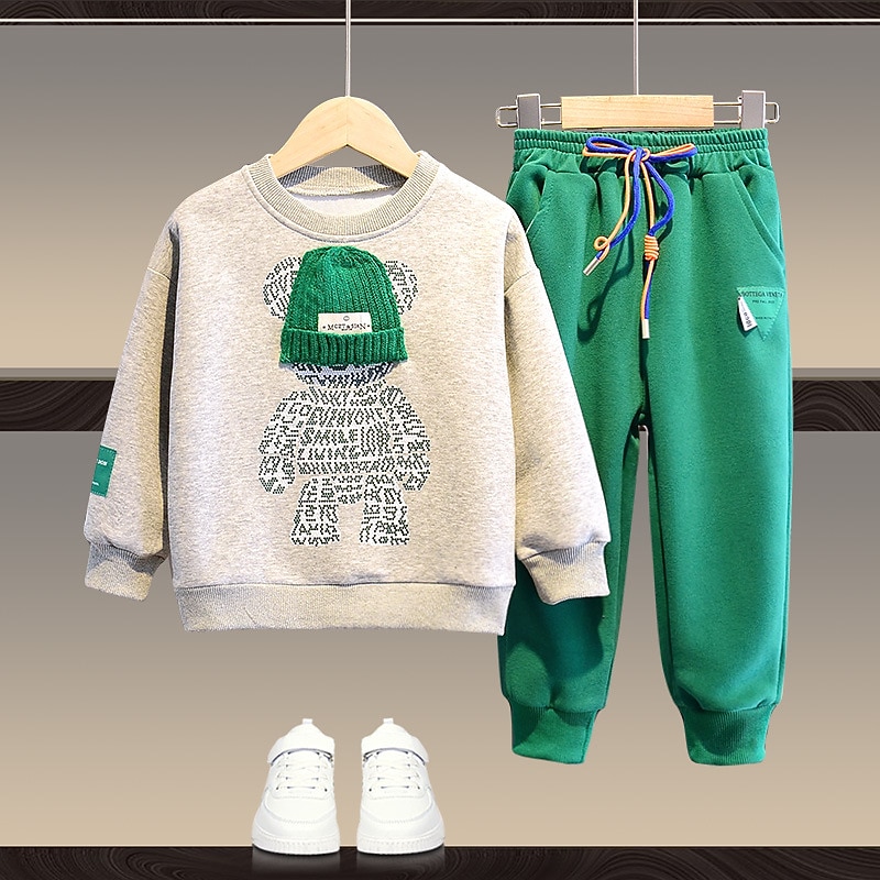 More information about 2 Pieces Kids Boys Hoodie & Sweatpants Set Clothing Set Outfit Bear Letter Long Sleeve Pocket Set Outdoor Fashion Cool Daily Spring Fall 7-13 Years Black White Army Green