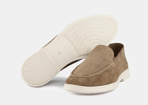 Men's Suede Slip-On Loafers, Taupe with White Sole, Casual Comfort Moccasin Style 6