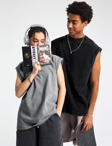 • Unisex Tank Top: Acid wash cotton tshirts, oversized tank top for women, baggy gym workout shirts men, solid color basic tee top for young women and men. Machine or hand wash in cold water, hang to dry.