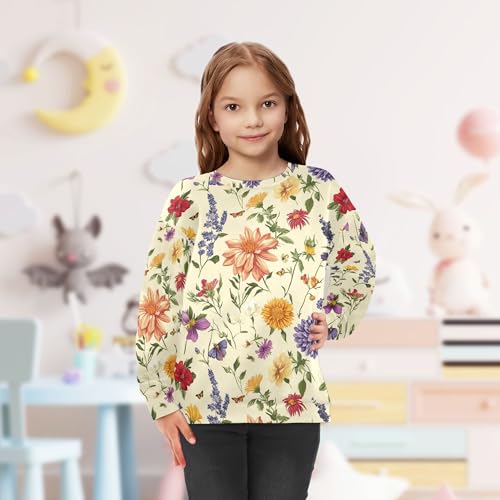 JUNZAN Fall Flowers Lavender Butterflies Beige Big Boys Hoodie Sweatshirt Long Sleeve Boys Sweat Shirt Athletic 4T 4