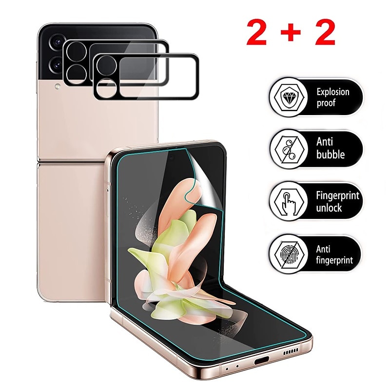 €5.99 - [2+2Pack] Screen Protector + Camera Lens Protector For Samsung Galaxy Z Flip 7 Z Flip 6 Z Flip 5 Z Flip 4 Z Flip 3 TPU Hydrogel 9H Hardness Anti Bubbles Anti-Fingerprint High Definition Explosion 2025. Shop for cheap Samsung Screen Protectors online? Buy at lightinthebox.com on sale today!