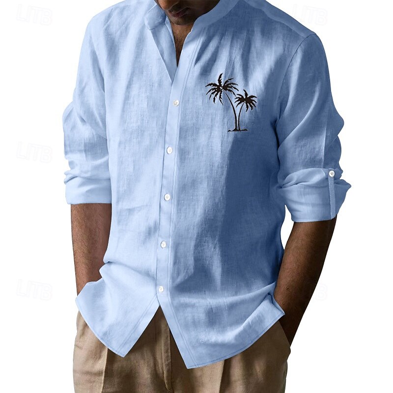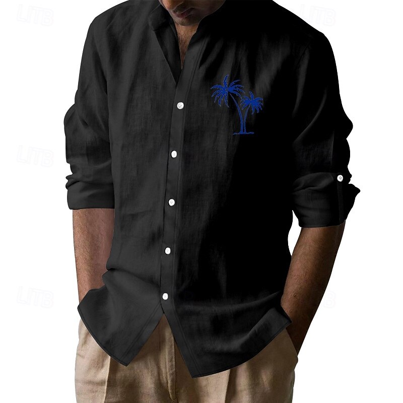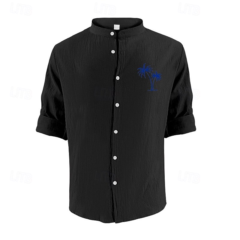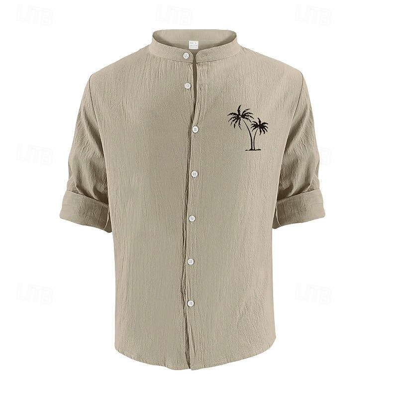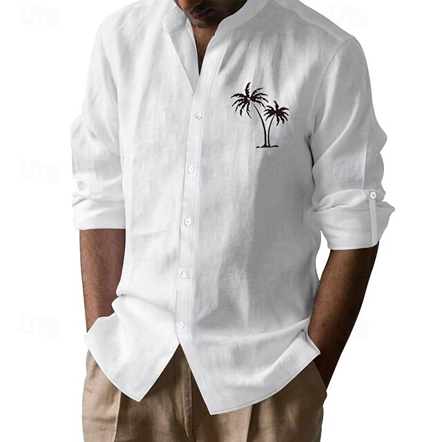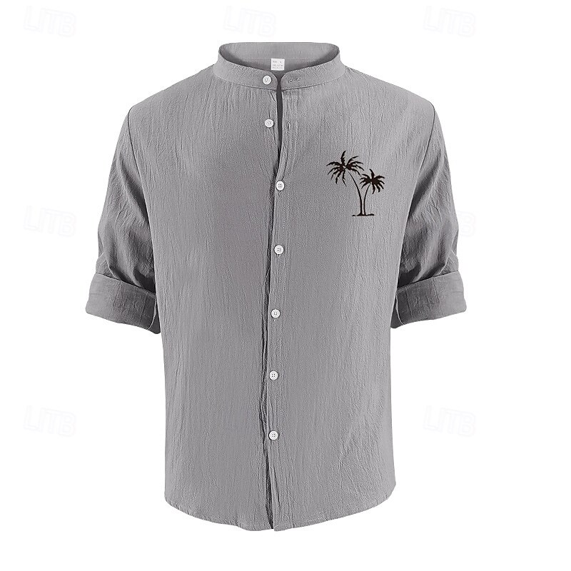 More information about Men's Shirt Linen Shirt Casual Shirt Button Up Shirt Cotton Shirt Palm Tree Vacation Hawaiian Black White Khaki Gray Long Sleeve Band Collar Spring Fall Clothing Apparel Print