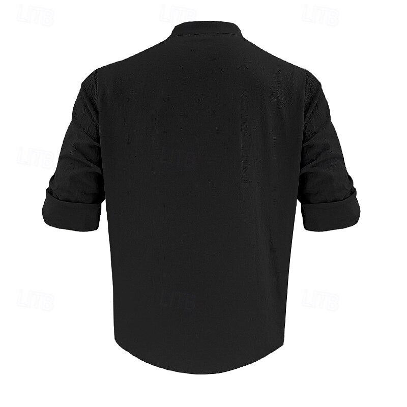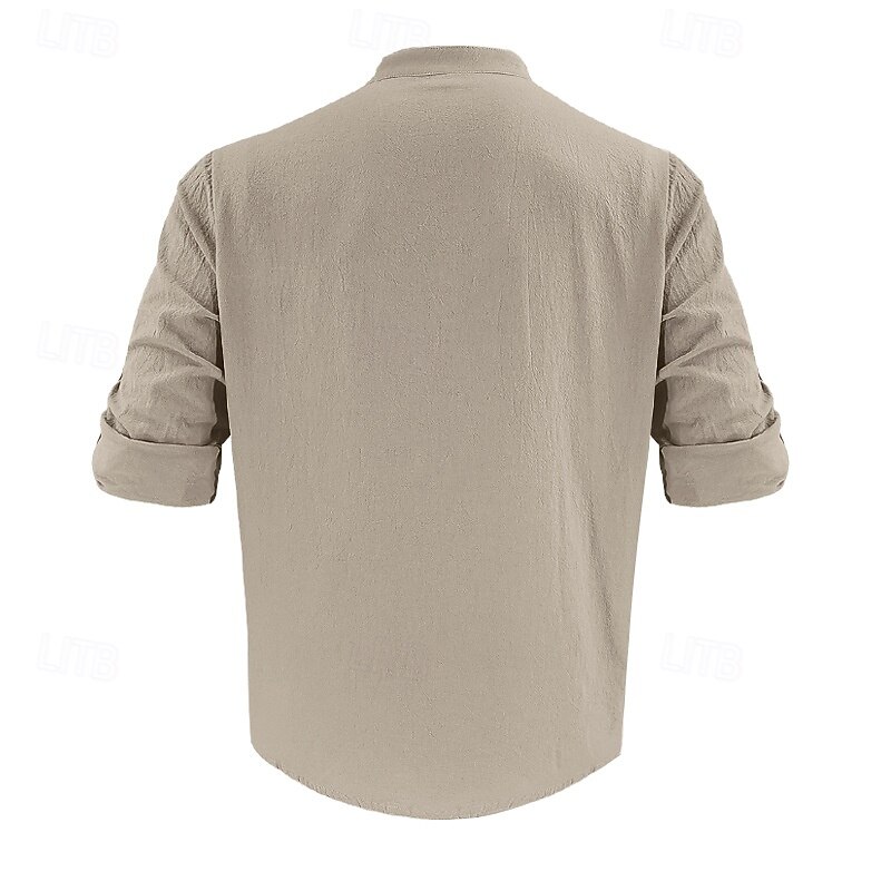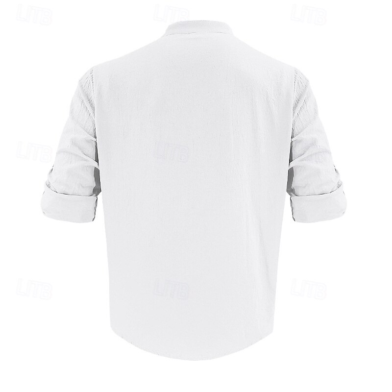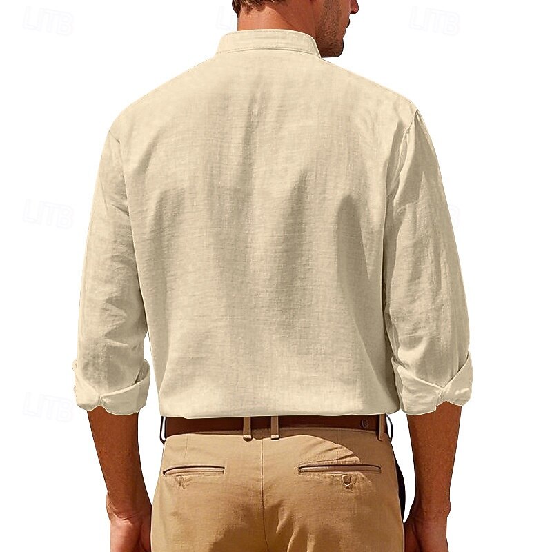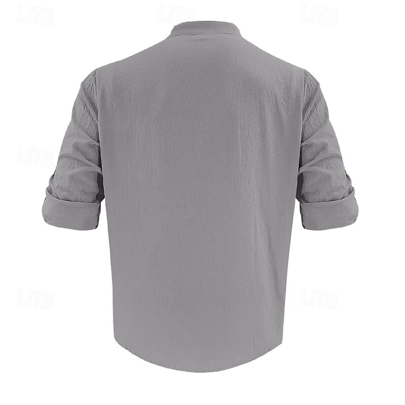 More information about Men's Shirt Linen Shirt Casual Shirt Button Up Shirt Cotton Shirt Palm Tree Vacation Hawaiian Black White Khaki Gray Long Sleeve Band Collar Spring Fall Clothing Apparel Print