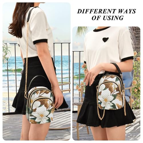 HOT ! susiyo Quilted Crossbody Bag White Magnolias Flowers Leaves Womens Small Shoulder Purses with Chain Strap