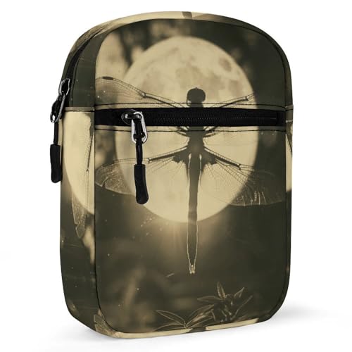Personalized Small Crossbody Bag Water Resistant Messenger Bags Mini Dragonfly And Moon Printing SlingBag For Men Women 7