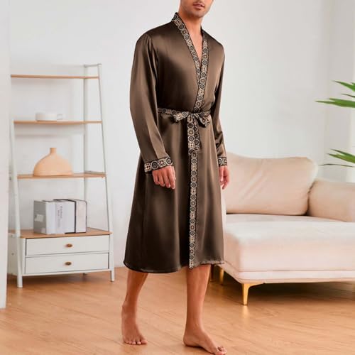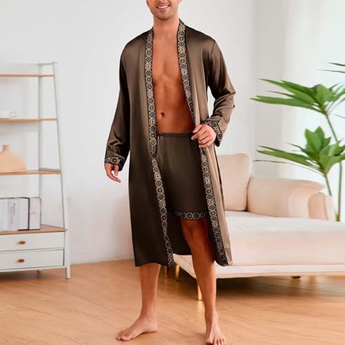 HOT ! Cambkatl Satin Robe for Men Lightweight 2 PCs Nightwear Silky Kimono Bathrobe with Shorts Open Front Long Cardigan with Belt