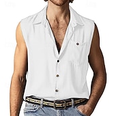 More information about Men's Shirt Summer Shirt Casual Shirt Beach Shirt Button Up Shirt Black White Brown Green Light Blue Sleeveless Plain Lapel Vacation Hawaiian Pocket Clothing Apparel Polyester Fashion Casual