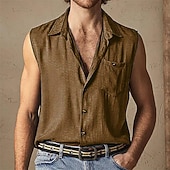 Highlights Perfect for summer vacations, this sleeveless men's shirt features a stylish lapel neckline. Enjoy the season in comfort and style.